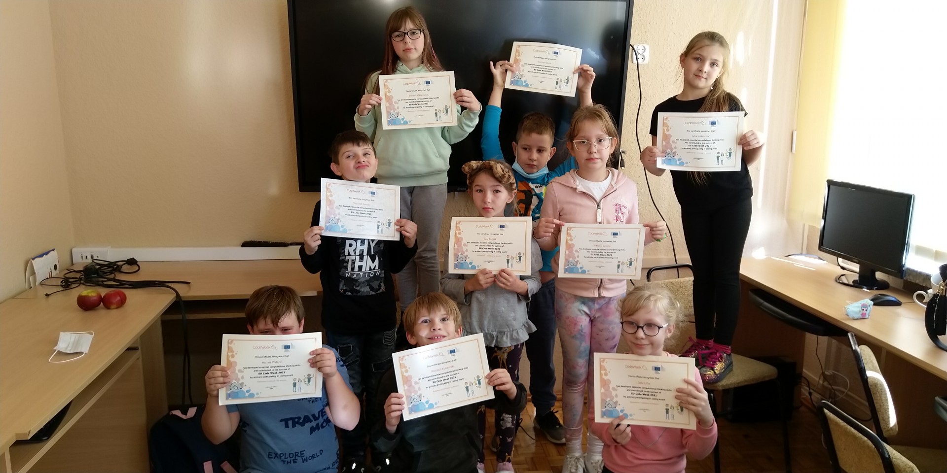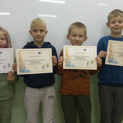 Od 11 do 15 października uczniowie Szkoły Podstawowej w Marzeninie po raz drugi wzięli udział w kolejnej edycji CodeWeek. Jest to bardzo duże wydarzenie programistyczne organizowane w całej Europie. Przez cały tydzień uczniowie dzielnie programowali, kodowali, budowali. Wszystkie prace zostały docenione a uczestnicy otrzymali certyfikaty, które wywołały wiele emocji. Były one bowiem w języku angielskim i brakowało w nich polskich znaków. Szczególnie rozbawiły dzieci ich „nowe” nazwiska i imiona. Sprawiły one, że CodeWeek oprócz bycia ciekawym wyzwaniem stał się wesołą przygodą. Agnieszka Przybylska Dodano: poniedziałek 8 listopada 2021
