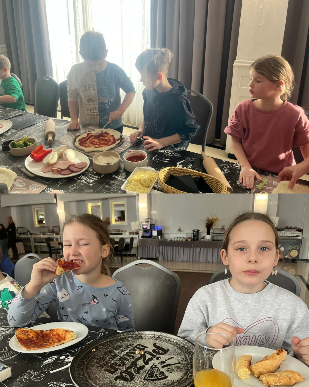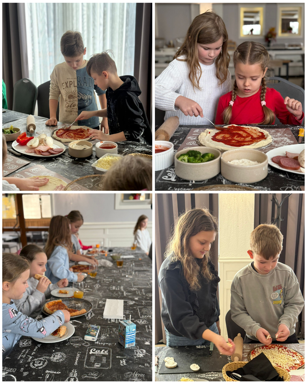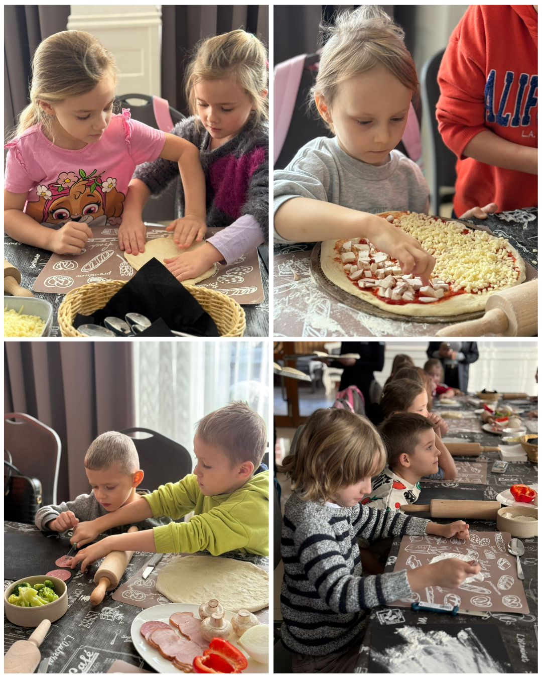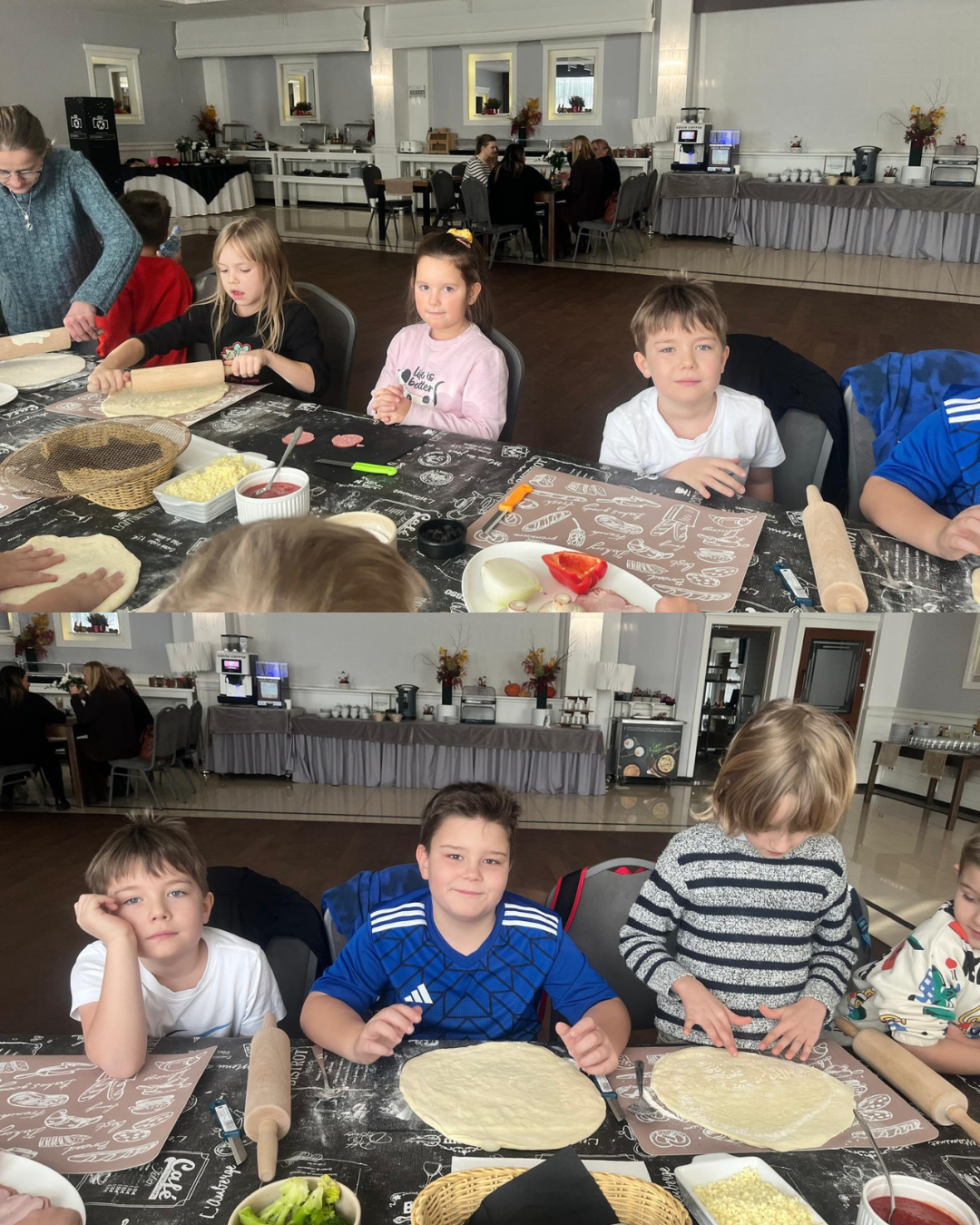 27 listopada 2025 roku uczniowie klas 0–3 naszej szkoły uczestniczyli w wyjątkowym, andrzejkowym wyjeździe do Hotelu Kosmowski we Wrześni.Celem wycieczki były warsztaty tworzenia pizzy, podczas których uczniowie mieli okazję zamienić się w prawdziwych kucharzy.Zajęcia poprowadził szef kuchni hotelu, który w ciekawy i przystępny sposób opowiedział dzieciom o całym procesie powstawania pizzy – od przygotowania ciasta, przez dobór składników, aż po wypiek w piecu. Następnie każdy uczestnik mógł stworzyć własną, niepowtarzalną kompozycję smakową. Mali kucharze samodzielnie kroili składniki, dobierali ulubione dodatki i układali je na przygotowanym wcześniej cieście.