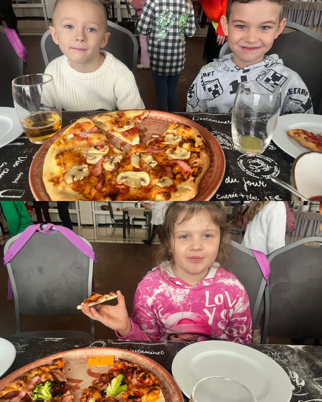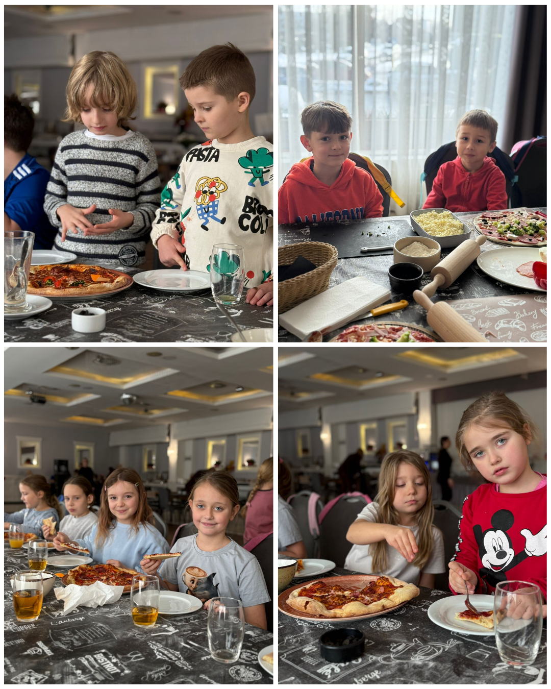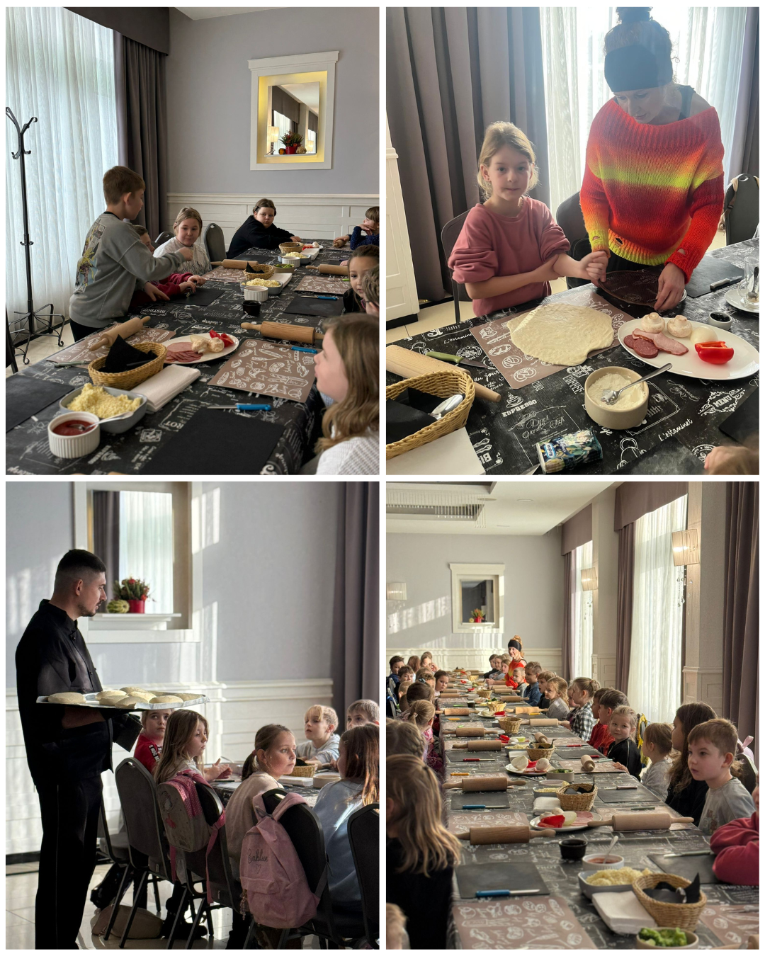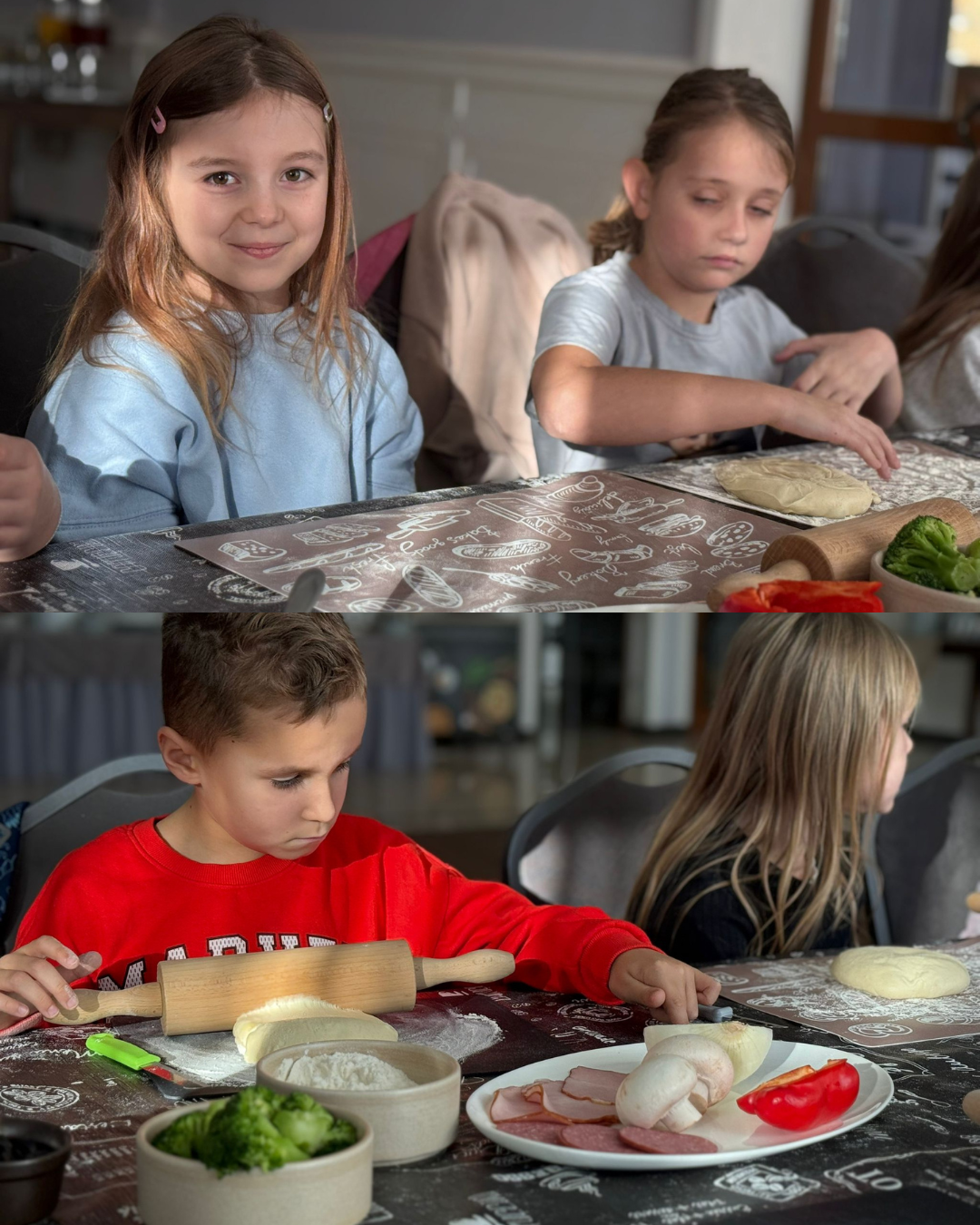 27 listopada 2025 roku uczniowie klas 0–3 naszej szkoły uczestniczyli w wyjątkowym, andrzejkowym wyjeździe do Hotelu Kosmowski we Wrześni.Celem wycieczki były warsztaty tworzenia pizzy, podczas których uczniowie mieli okazję zamienić się w prawdziwych kucharzy.Zajęcia poprowadził szef kuchni hotelu, który w ciekawy i przystępny sposób opowiedział dzieciom o całym procesie powstawania pizzy – od przygotowania ciasta, przez dobór składników, aż po wypiek w piecu. Następnie każdy uczestnik mógł stworzyć własną, niepowtarzalną kompozycję smakową. Mali kucharze samodzielnie kroili składniki, dobierali ulubione dodatki i układali je na przygotowanym wcześniej cieście.