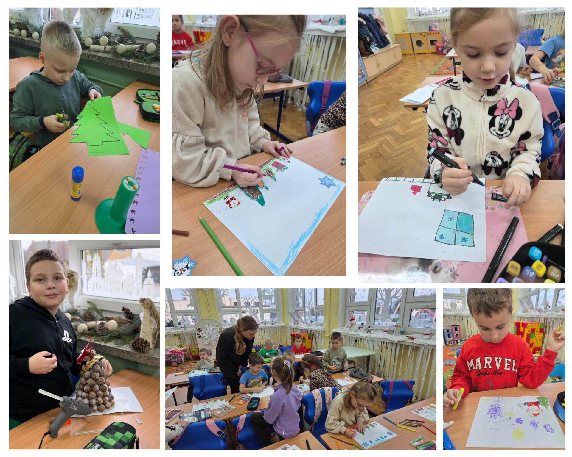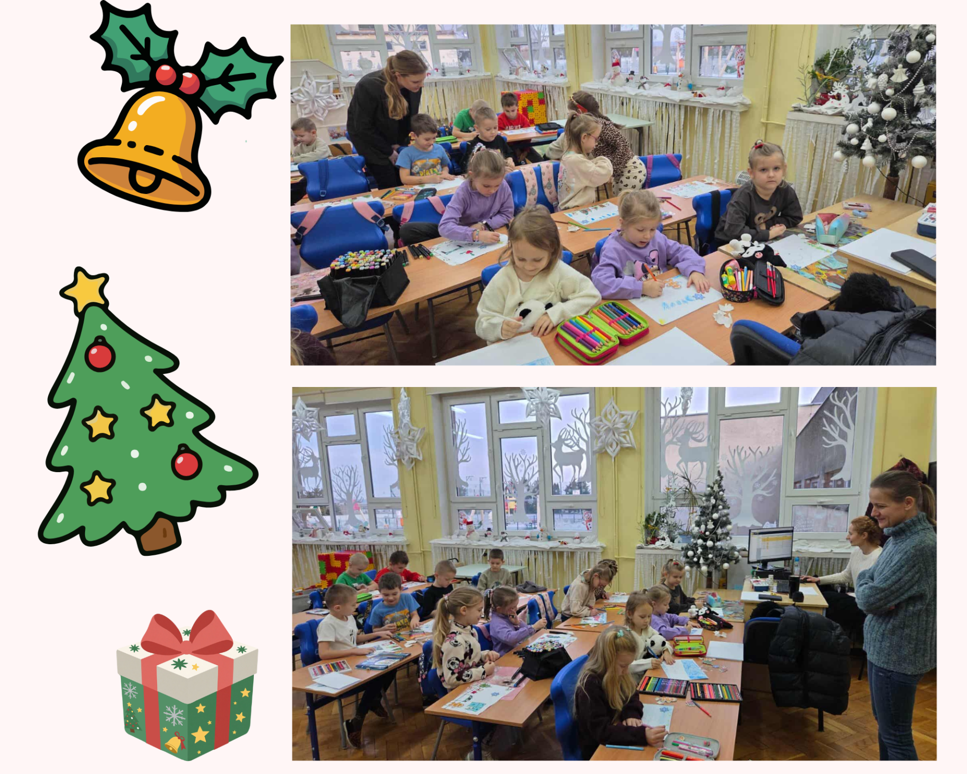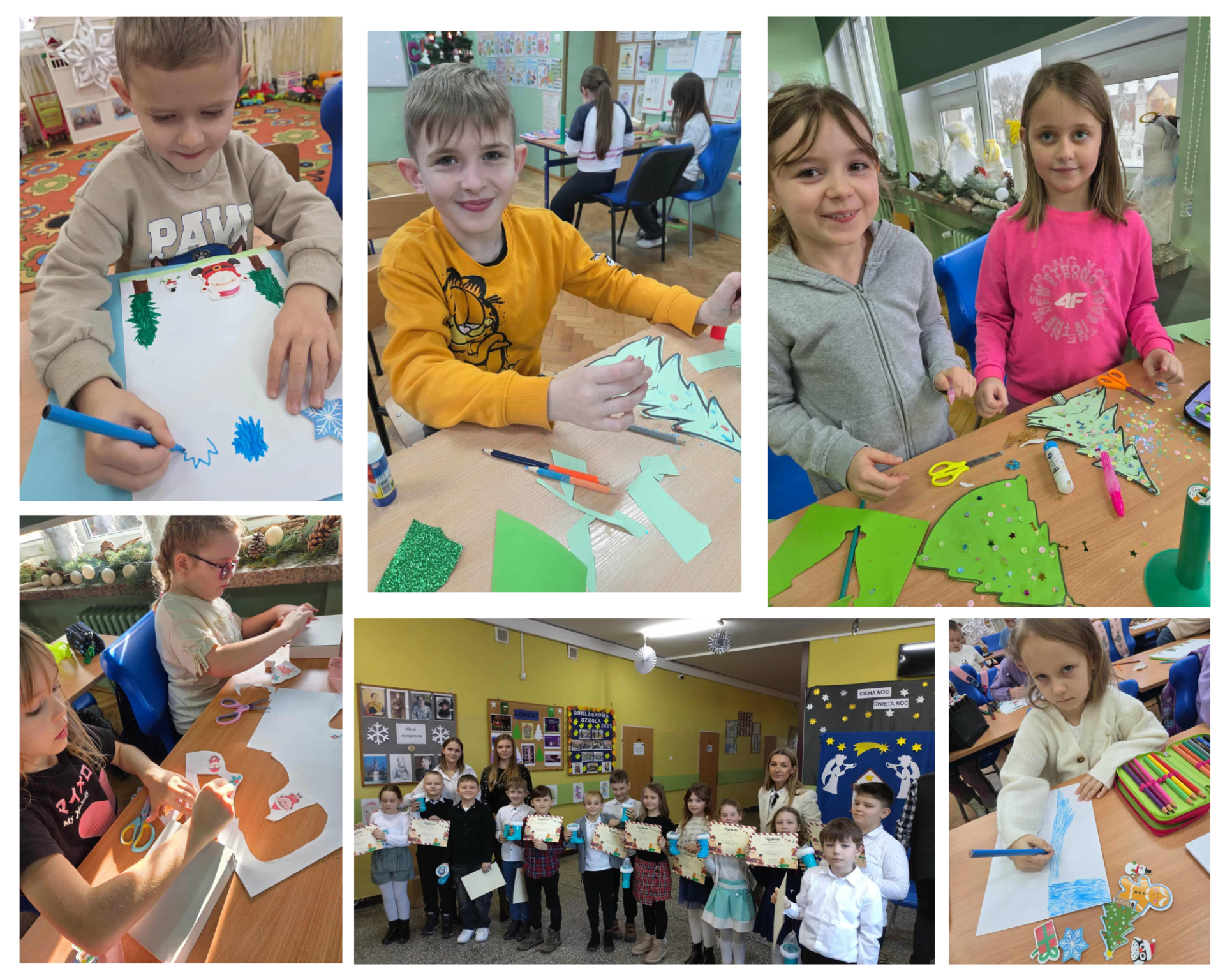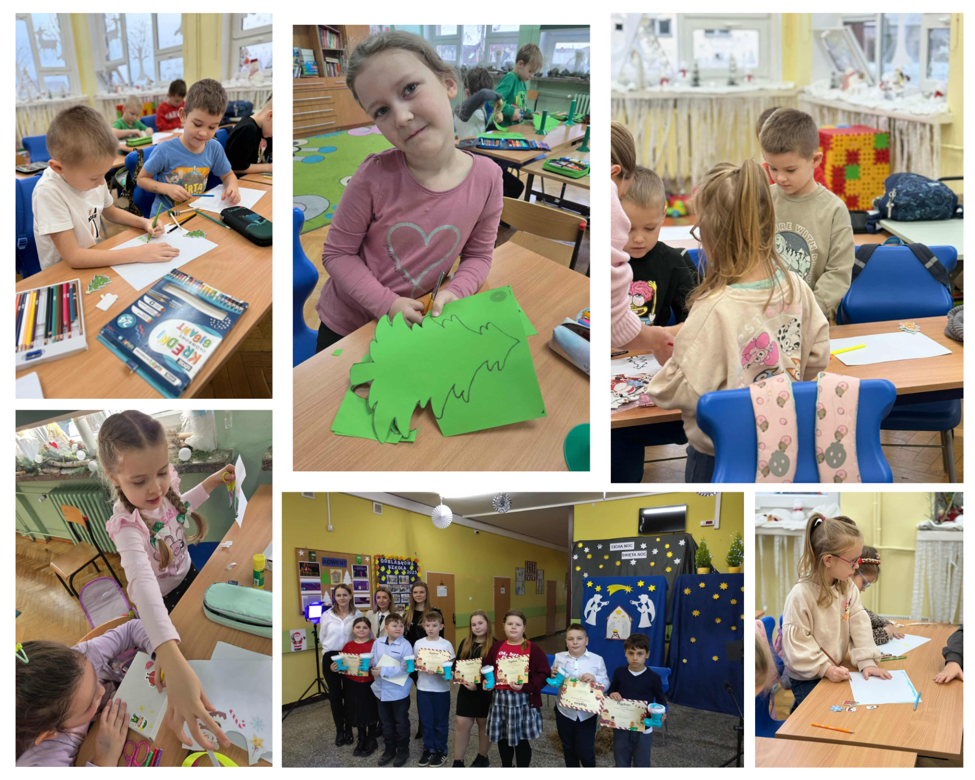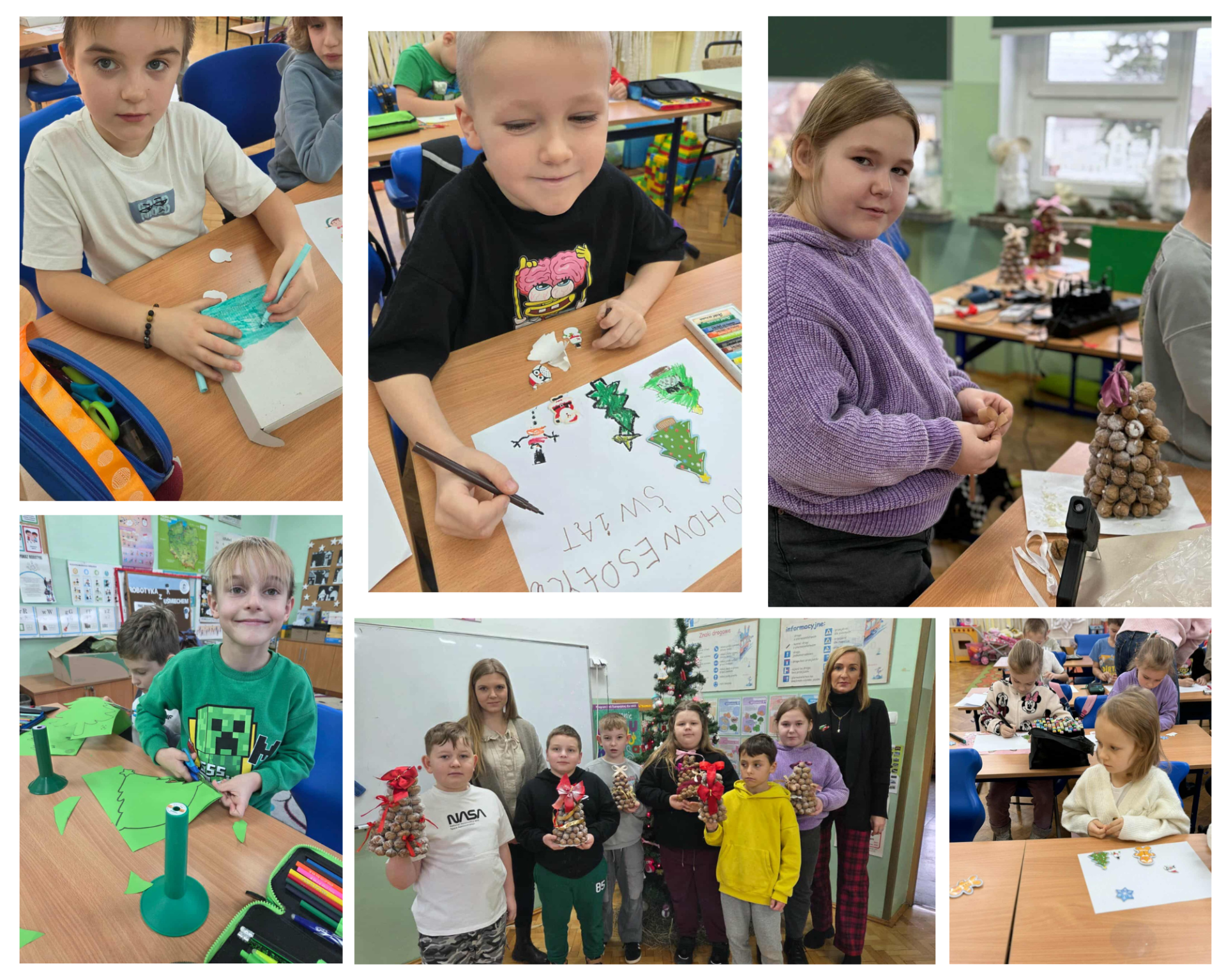 W grudniu 2025 roku w naszej szkole został zorganizowany konkurs bożonarodzeniowy dla uczniów klas 0–3. Dzieci samodzielnie wykonywały swoje prace plastyczne, wykazując się ogromną kreatywnością i zaangażowaniem.Uczniowie przygotowali różnorodne prace tematyczne:
