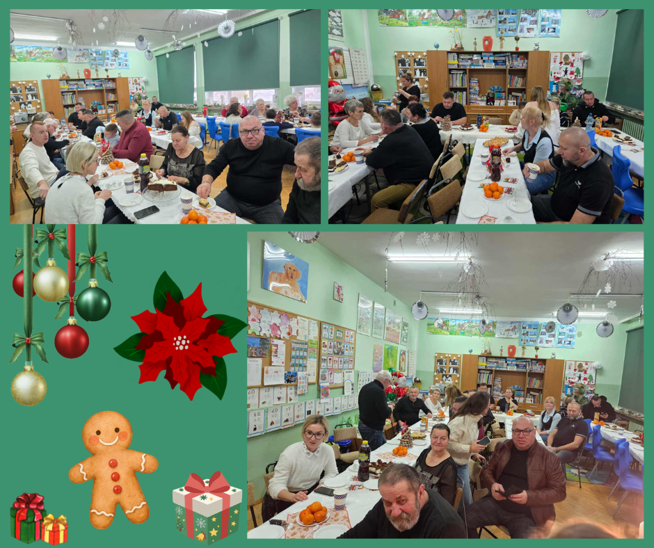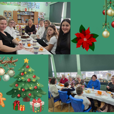 Następnie wszyscy zasiedliśmy wspólnie do stołów, aby spędzić razem kilka chwil przy rozmowie i świątecznym poczęstunku. Delektowaliśmy się pysznymi ciastami przygotowanymi przez rodziców.