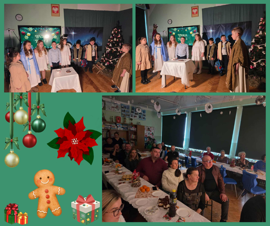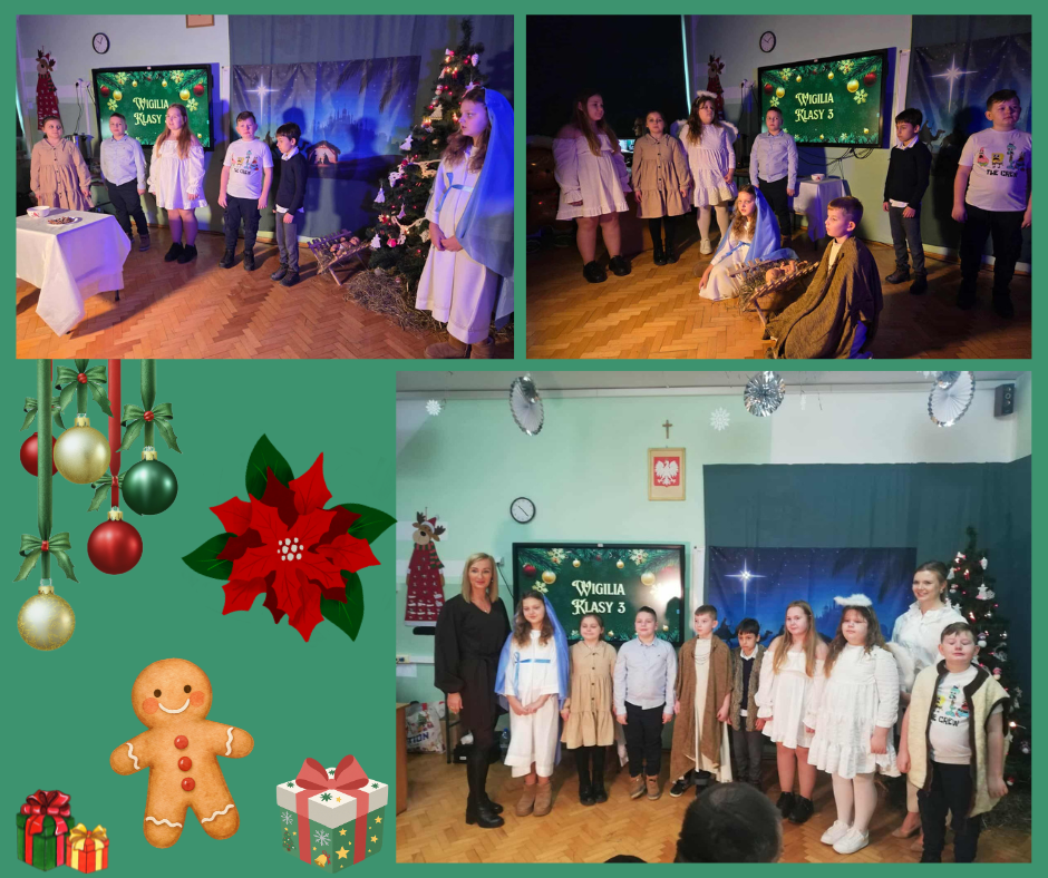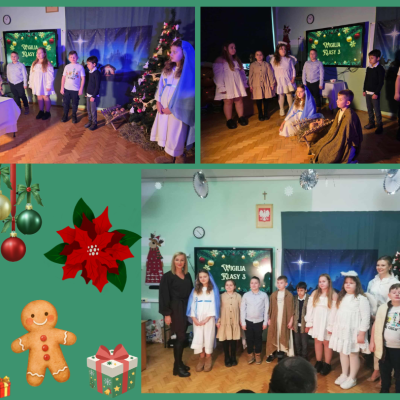 Jasełka w klasie 318 grudnia 2025 roku w klasie 3 odbyły się Jasełka przygotowane przez panie nauczycielki Alicję Wierzbicką oraz Agnieszkę Przybylską. Uczniowie z dużym zaangażowaniem wcielili się w swoje role i z ogromną radością zaprezentowali przedstawienie bożonarodzeniowe.